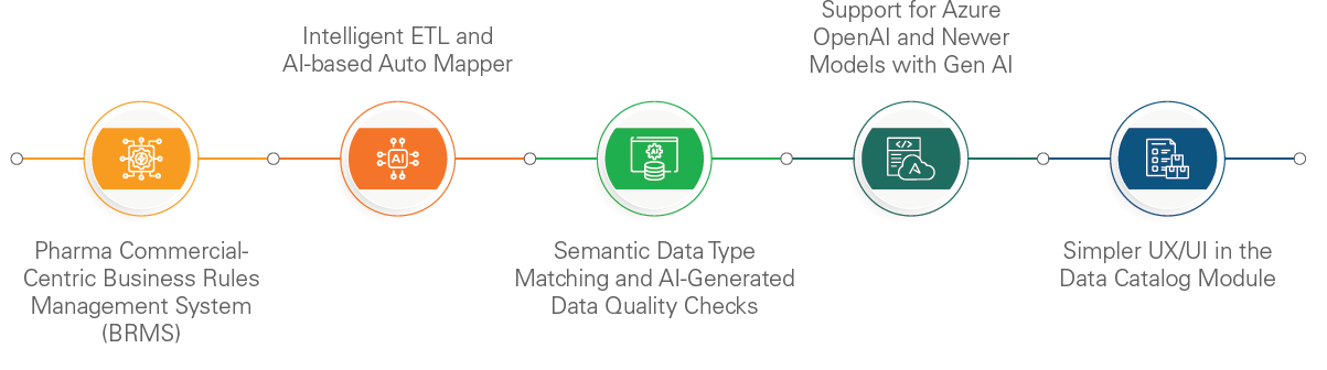 - First Pharma Commercial-Centric AI Auto Mapper: Improves data accuracy, enhances efficiency, speeds up time-to-market, and delivers tailored insights for better commercial strategies.