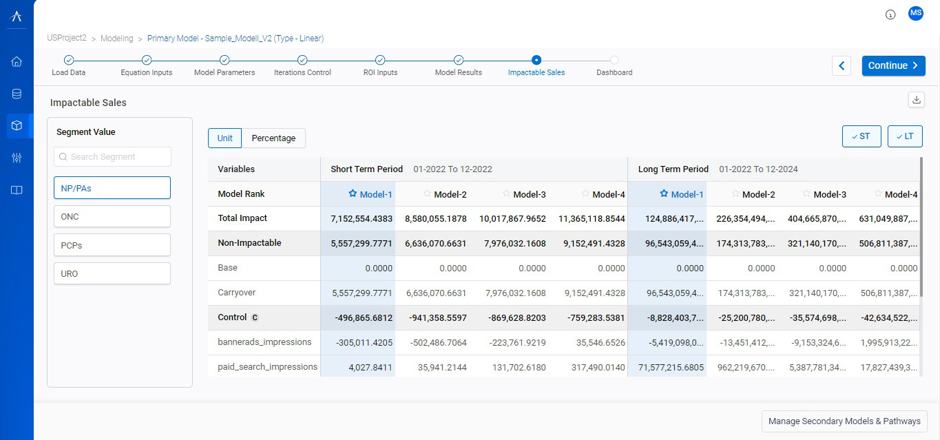 - Clear distinctions between control and promotional variables with table divisions and icons, in the impactable sales, improve experience and usability, ultimately driving more effective business outcomes.
